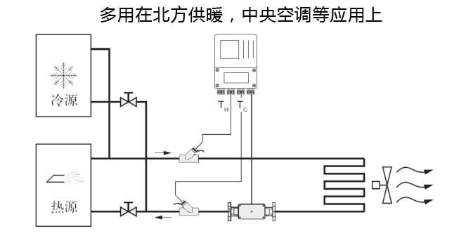 LDGR-SIN電磁熱量表是將一對溫度傳感器分別安裝在通過載熱流體的上行管和下行管上,流量計安裝在流體入口或回流管上。