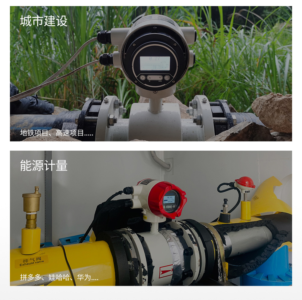 電磁流量計(jì)工作原理基于法拉第電磁感應(yīng)定律。圖 2 中上下兩端的兩個(gè)電磁線圈產(chǎn)生恒定或交變磁場(chǎng),當(dāng)導(dǎo)電介質(zhì)流過(guò)電磁流量計(jì)時(shí),流量計(jì)管壁上的左右兩個(gè)電極間可檢測(cè)到感應(yīng)電動(dòng)勢(shì),這個(gè)感應(yīng)電動(dòng)勢(shì)大小與導(dǎo)電介質(zhì)流速、磁場(chǎng)的磁感應(yīng)強(qiáng)度、導(dǎo)體寬度(流量計(jì)測(cè)量管內(nèi)徑)成正比,再通過(guò)運(yùn)算就可以得到介質(zhì)流量。