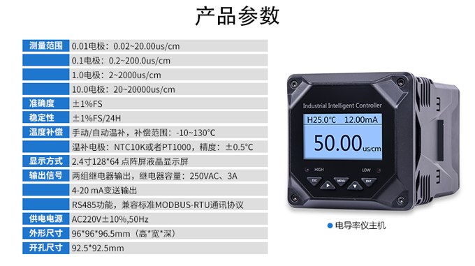 SIN-TDS210工業(yè)電導率儀表,可對各種工業(yè)用水的電導率(TDS)值進行連續(xù)測量和控制,本裝置廣泛應用于科學實驗裝備、化工、制藥、環(huán)保、冶金、造紙、食品、飲料及供水等行業(yè)。根據(jù)水工業(yè)的環(huán)境和特點結合國際供電標準,考慮了特殊環(huán)境的電氣設計規(guī)范,增加了220VAC供電。
