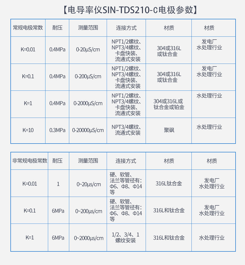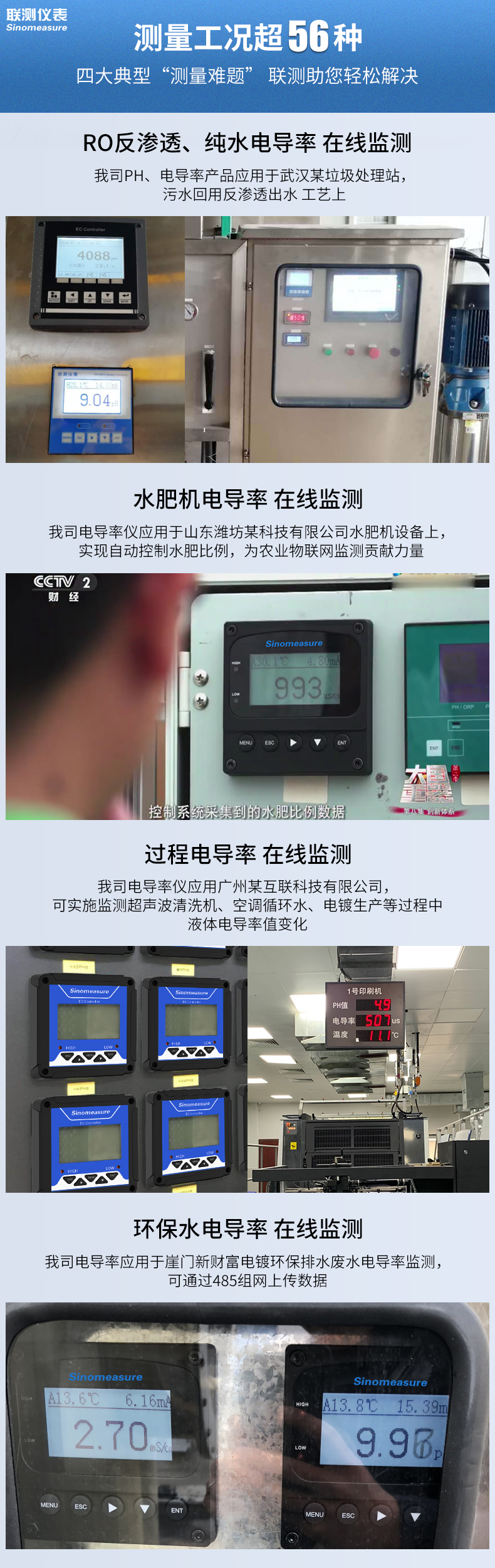 應用行業 聯測儀表SIN-TDS210-C工業電導率儀表,廣泛應用于火電、化工化肥、冶金、環保、制藥、生 化、食品和自來水等行業。