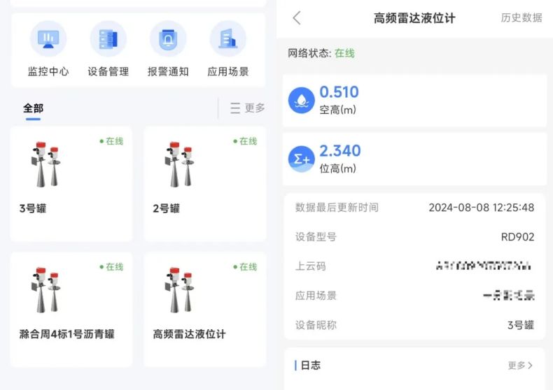 美儀合肥辦事處高工介紹,為了提升項(xiàng)目過程中物料管理的效率與安全性,本次合作中,美儀「雷達(dá)物位計(jì)+儀表云」主要應(yīng)用于瀝青儲罐內(nèi)料位的檢測。