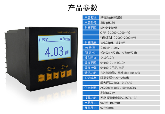 SIN-pH160是工業pH計,是工業酸度計的智能化升級產品,可對污水pH值進行連續測量和控制。