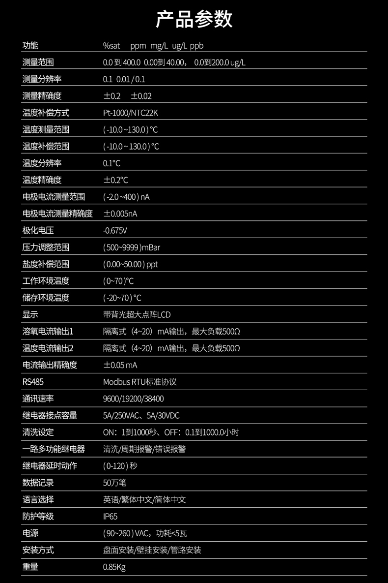 | 應用行業 | 聯測_SIN-DO8.0膜法溶氧儀廣泛應用于水,鍋爐水,海水,養殖,水族館,地表水,工業污水,都市廢水,環境監測,食品生產過程等。 |