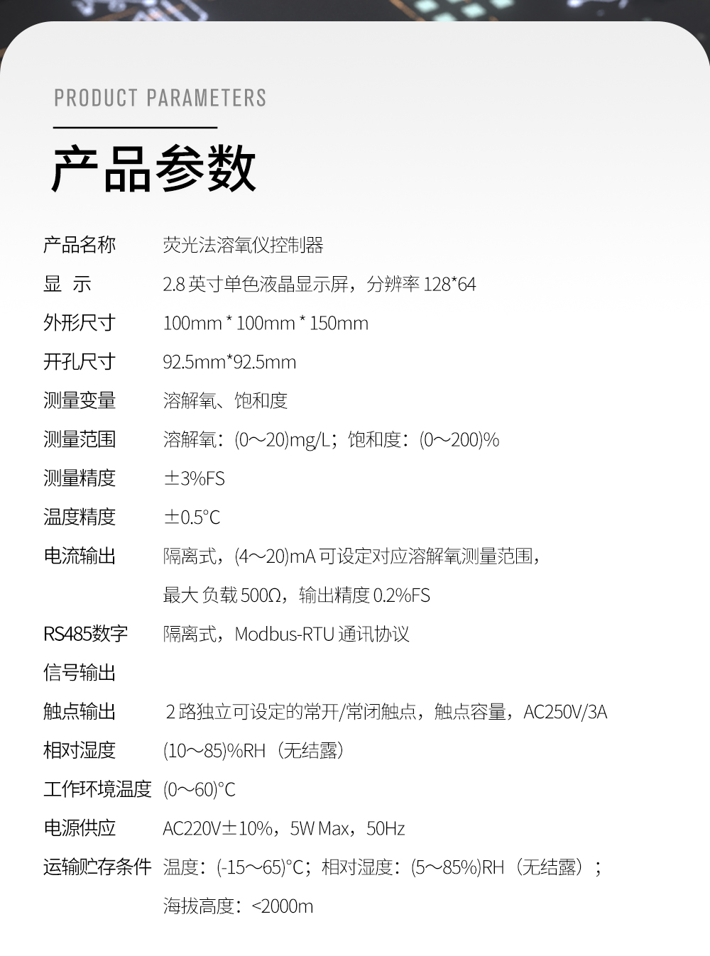 熒光法溶解氧在線分析儀是一款智能在線光學分析儀器,是一款廣 泛應用于火電、化工化肥、冶金、環保、制藥、生化、食品和自來水等 溶液中溶解氧、飽和度和溫度的連續監測的儀表。 連續監測數據通過變送輸出連接記錄儀實現遠傳監控與記錄,也可 以連接 RS485 接口通過 Modbus-RTU 協議可方便聯入計算機實現監控與記錄