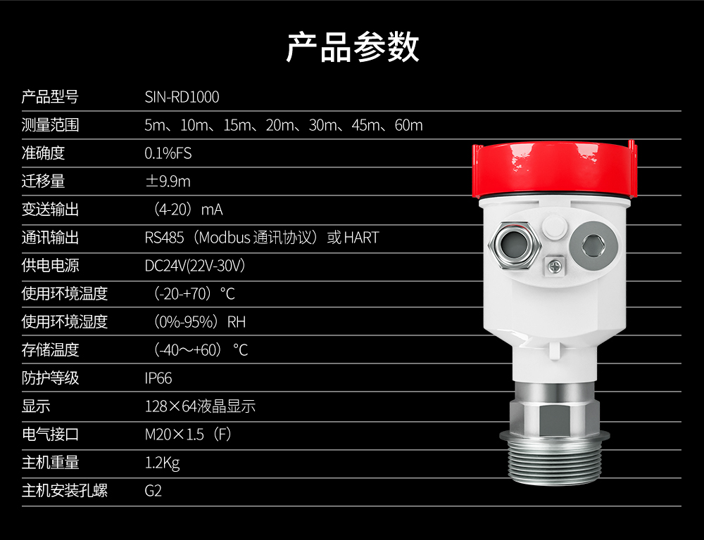 聯測儀表SIN-RD1000雷達液位計80GHz頻率0-60米水位